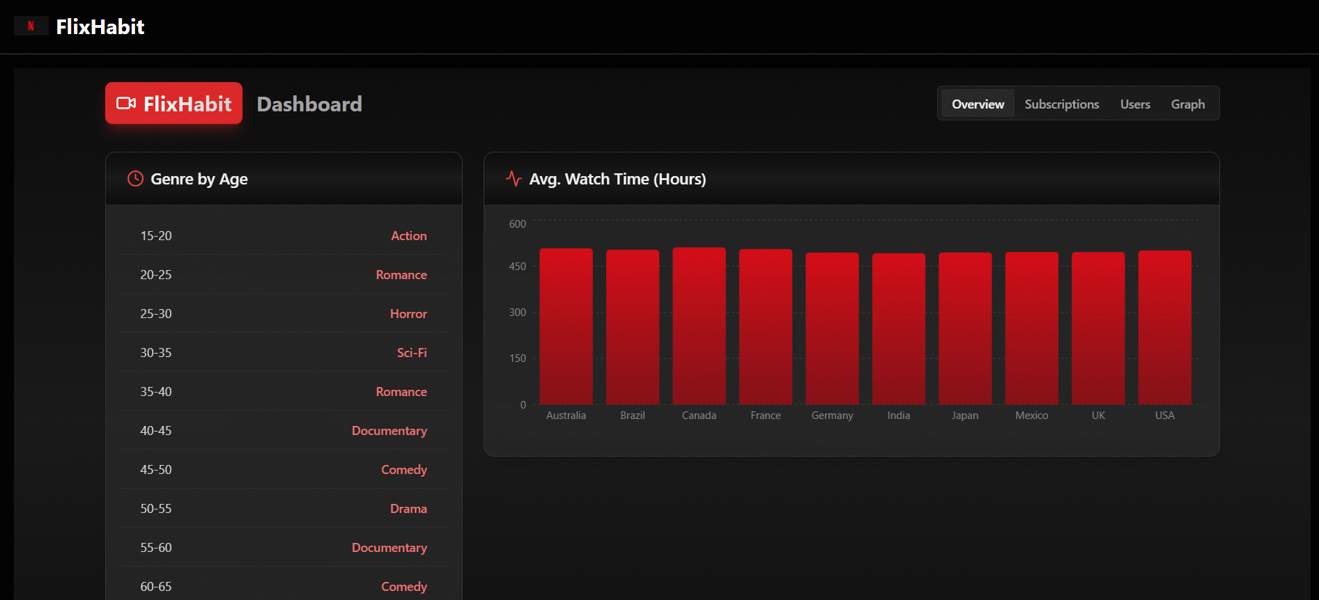 View Project→Analyzes Netflix-style user data to recommend movies based on genre similarity and user preferences. Features data visualization and JSON export for a frontend interface.